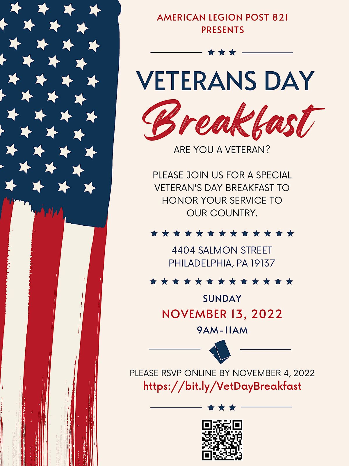 Veterans Day Breakfast, Bridesburg American Legion Post 821, Military.com is compiling a list of veterans day discounts on restaurants,.